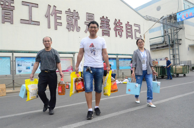 日前,在傳統(tǒng)的中秋佳節(jié)來臨前夕,公司為員工準(zhǔn)備了花生油、小米、月餅等節(jié)日慰問品,以體現(xiàn)對(duì)員工傾情奉獻(xiàn)企業(yè)發(fā)展的慰問與關(guān)愛。圖為員工領(lǐng)取節(jié)日慰問品的情形。