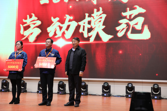 導讀:1月4日,在公司年度總結表彰大會上,公司黨委書記、董事長王力民為獲得“2019年度勞動模范”稱號的兩位員工胡慧慧、秦鴻章頒發(fā)了勞動獎章和勞模獎金。