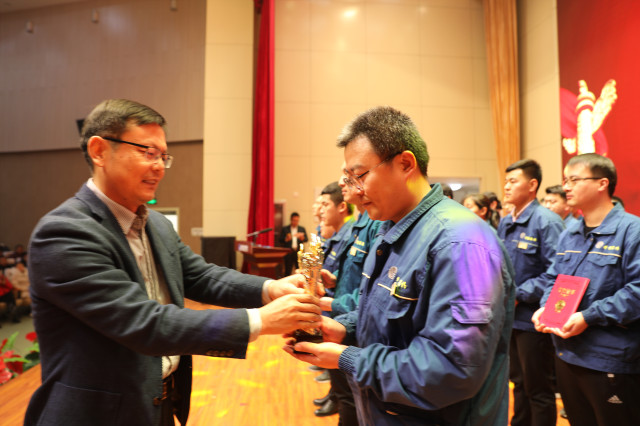 1月4日,公司在持續(xù)深化精益生產(chǎn)年度總結(jié)動員大會上,公司對獲得2019年度(第三屆)“華紡工匠”的5位員工進(jìn)行了表彰,副總經(jīng)理盛守祥為他們頒發(fā)獎(jiǎng)杯。
