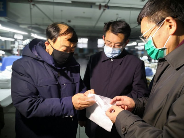 2月7日,濱州市委書記、市人大常委會主任佘春明,濱城區(qū)委副書記、區(qū)長張瑞杰,濱州市工信局黨委書記、局長王道臣,來到公司調(diào)研督導(dǎo)疫情防控、口罩生產(chǎn)和企業(yè)復(fù)工復(fù)產(chǎn)工作。