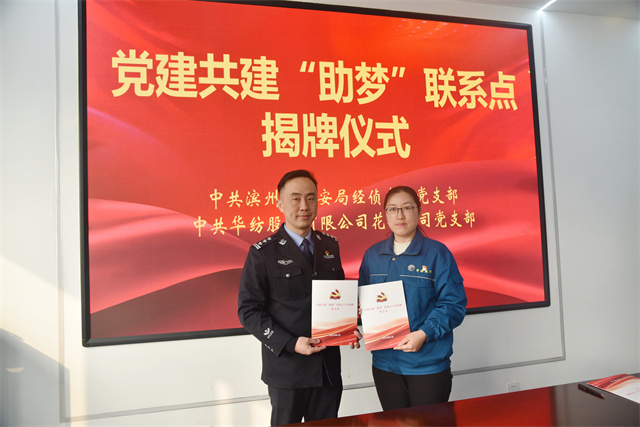 導(dǎo)讀:2月24日,華紡股份有限公司花布公司黨支部與濱州市公安局經(jīng)偵支隊黨支部開展黨建共建“助夢”聯(lián)系點簽約暨揭牌儀式。
