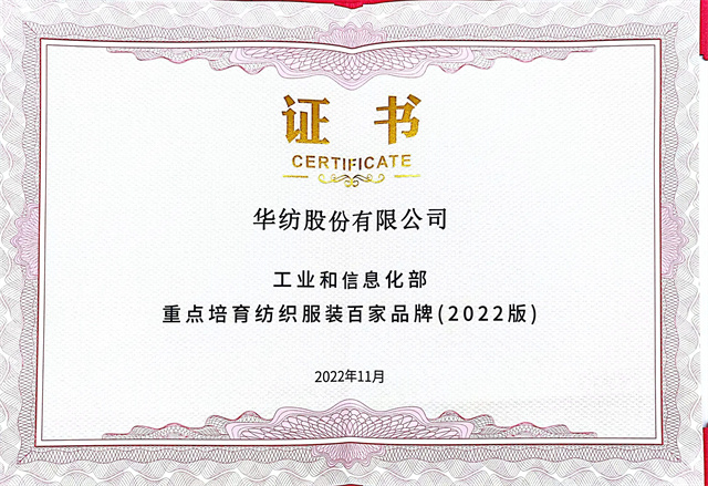 公司入選工信部重點(diǎn)培育紡織服裝百家品牌名單