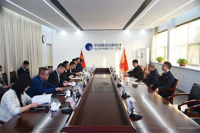 參觀結(jié)束后,座談交流會(huì)在一樓會(huì)議室召開,濱城區(qū)委常委、組織部部長(zhǎng)李一鳴主持會(huì)議。會(huì)上,閆英山對(duì)劉嘉麒院士一行的到來致以熱烈歡迎,并詳細(xì)介紹了企業(yè)發(fā)展歷程、生產(chǎn)運(yùn)營(yíng)、人才建設(shè)、技術(shù)研發(fā)及成果轉(zhuǎn)化等方面的情況。劉嘉麒院士也介紹了自己的研究領(lǐng)域和豐碩成果。隨后,雙方圍繞技術(shù)合作展開深入交流。劉嘉麒院士對(duì)公司在技術(shù)創(chuàng)新和產(chǎn)品研發(fā)方面取得的成就給予高度評(píng)價(jià),并表示希望未來能與華紡在相關(guān)領(lǐng)域開展更廣泛合作,共同推動(dòng)紡織行業(yè)的科技進(jìn)步與創(chuàng)新發(fā)展。