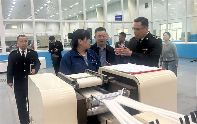 4月16日,濱州海關(guān)黨委書記、關(guān)長李光一行來公司參觀調(diào)研。濱州海關(guān)綜合業(yè)務(wù)一科科長劉金輝,綜合業(yè)務(wù)二科副科長朱士帥陪同調(diào)研。公司黨委委員、總經(jīng)理閆英山,市場運營部綜合事務(wù)管理主任楊霞,華紡國際進口部經(jīng)理韓黎明,服裝面料業(yè)務(wù)經(jīng)理王新東,儲運部主管楊箐箐陪同。