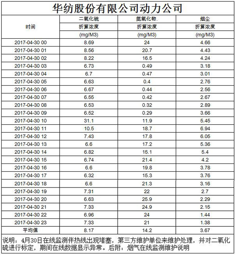 煙氣排放數(shù)據(jù)信息公開(kāi)2017.4.30數(shù)據(jù)