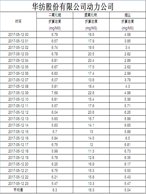 煙氣排放數(shù)據(jù)信息公開2017.5.12數(shù)據(jù)