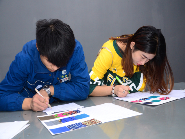 日前,公司質(zhì)量部組織印染車間技術(shù)人員進(jìn)行了色差、色棋測試。參加此次測試共計(jì)153人,分兩天完成,內(nèi)容分為統(tǒng)一目光、色棋排列兩方面。